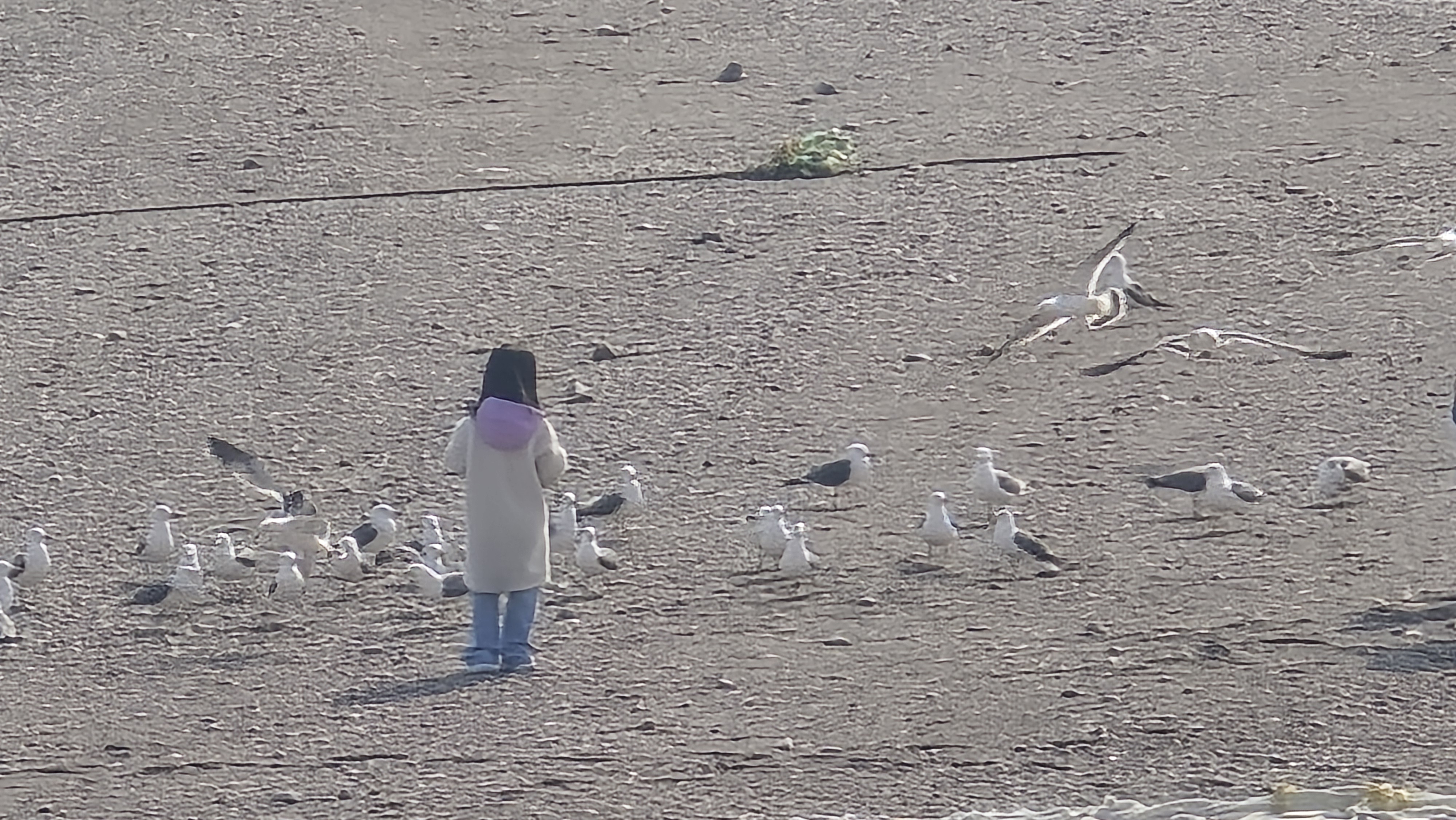 새우깡을 먹기위한 갈매기와 소녀의 시간이 너무나 행복해 보인다